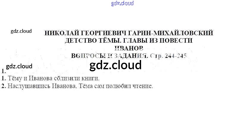 Вопросы и задания Николай Георгиевич Гарин-Михайловский. Детство Тёмы. Главы из повести. Иванов по Литературе 6 класс Учебник-хрестоматия Курдюмова Вертикаль Часть 1, 2 Дрофа