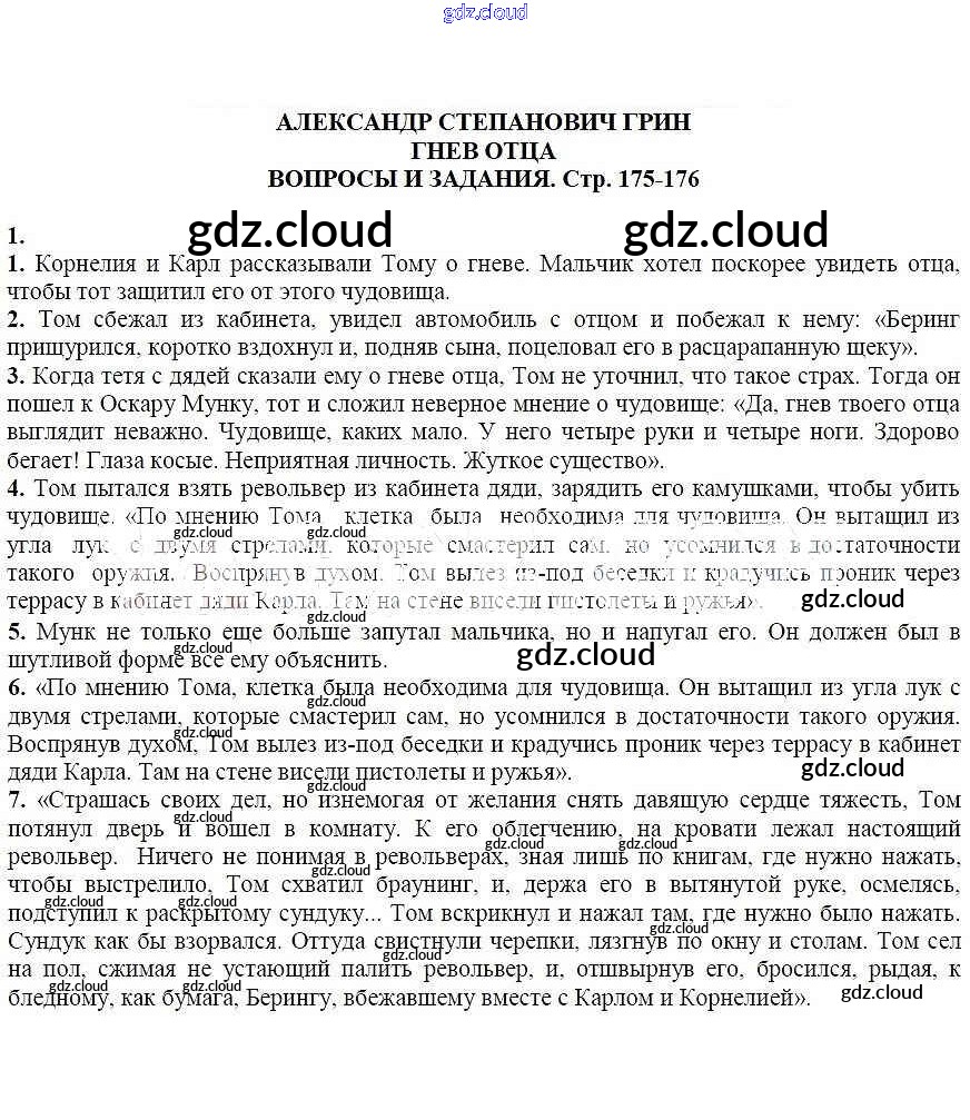 Вопросы и задания Александр Степанович Грин. Гнев отца по Литературе 6 класс Учебник-хрестоматия Курдюмова Вертикаль Часть 1, 2 Дрофа