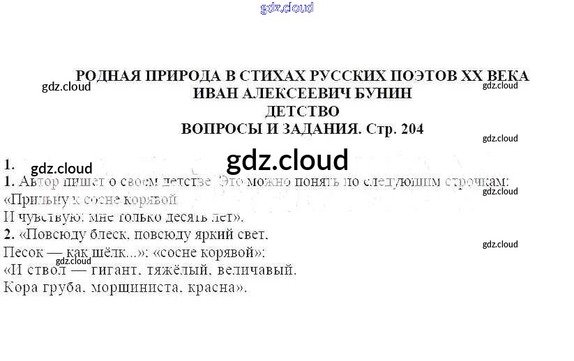 Вопросы и задания Родная природа в стихах русских поэтов XX века. Иван Алексеевич Бунин. Детство по Литературе 6 класс Учебник-хрестоматия Курдюмова Вертикаль Часть 1, 2 Дрофа