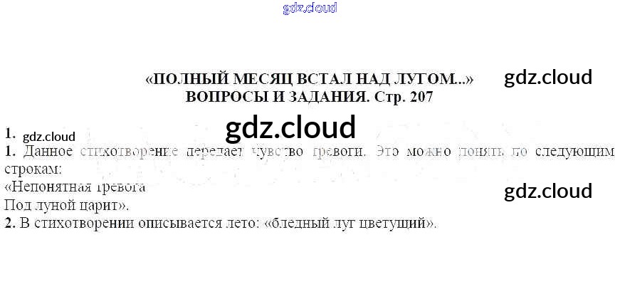 Вопросы и задания Полный месяц встал над лугом по Литературе 6 класс Учебник-хрестоматия Курдюмова Вертикаль Часть 1, 2 Дрофа