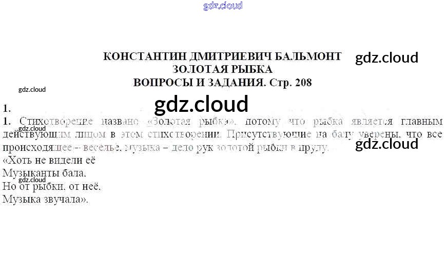 Вопросы и задания Константин Дмитриевич Бальмонт. Золотая рыбка по Литературе 6 класс Учебник-хрестоматия Курдюмова Вертикаль Часть 1, 2 Дрофа