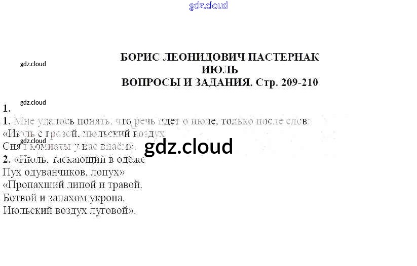 Вопросы и задания Борис Леонидович Пастернак. Июль по Литературе 6 класс Учебник-хрестоматия Курдюмова Вертикаль Часть 1, 2 Дрофа