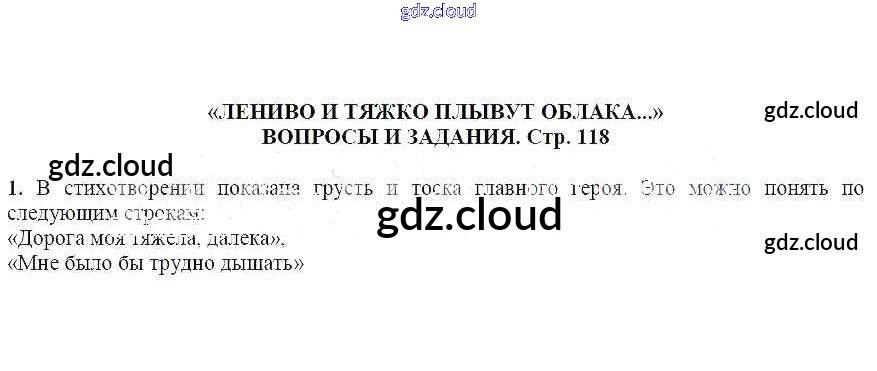 Вопросы и задания «Лениво и тяжко плывут облака.» по Литературе 6 класс Учебник Чертов Академический школьный учебник Часть 1, 2 Просвещение