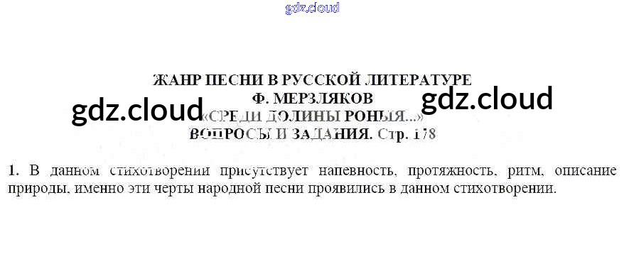 Вопросы и задания A.Ф. Мерзляков. «Среди долины ровныя.» по Литературе 6 класс Учебник Чертов Академический школьный учебник Часть 1, 2 Просвещение