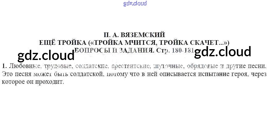 Вопросы и задания П. А. Вяземский. Ещё тройка («Тройка мчится, тройка скачет.») по Литературе 6 класс Учебник Чертов Академический школьный учебник Часть 1, 2 Просвещение