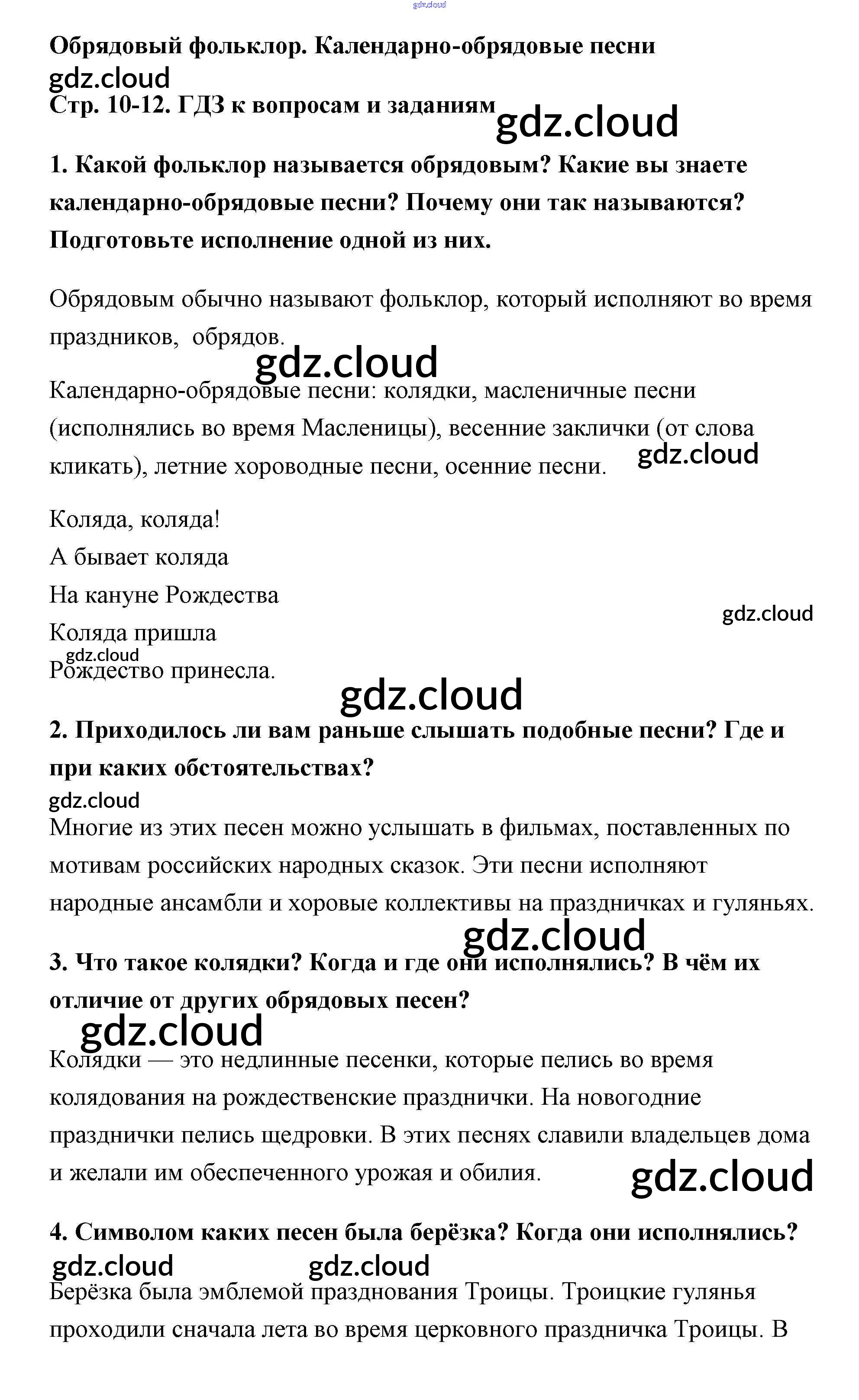Ответ на задание страница 10-12 Учебник Литература за 6 (шестой) класс Полухина, Коровина, Журавлев 2016 Часть 1