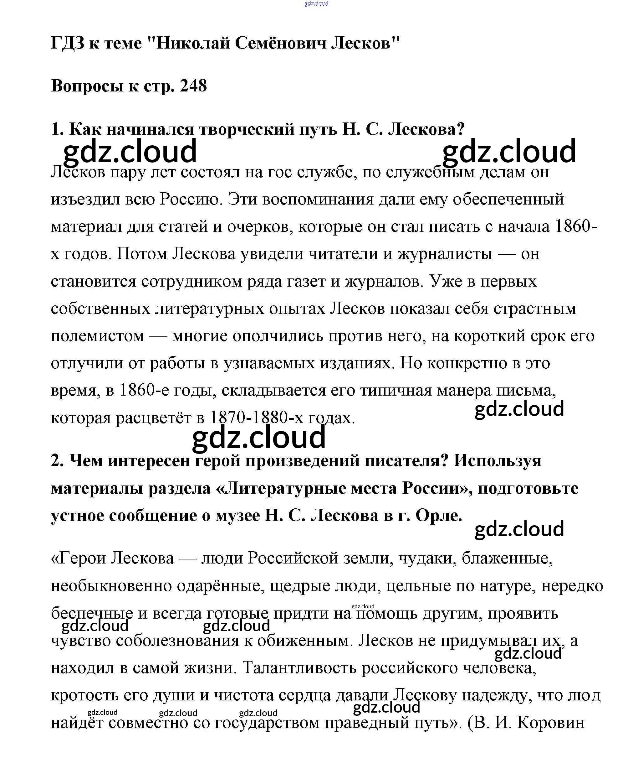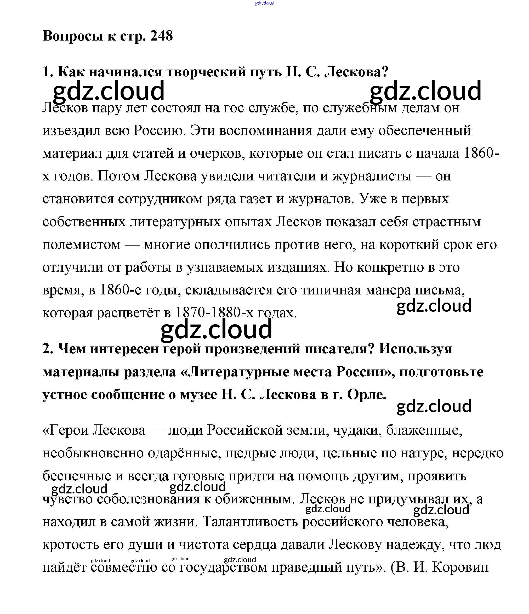 Ответ на задание страница 248 Учебник Литература за 6 (шестой) класс Полухина, Коровина, Журавлев 2016 Часть 1