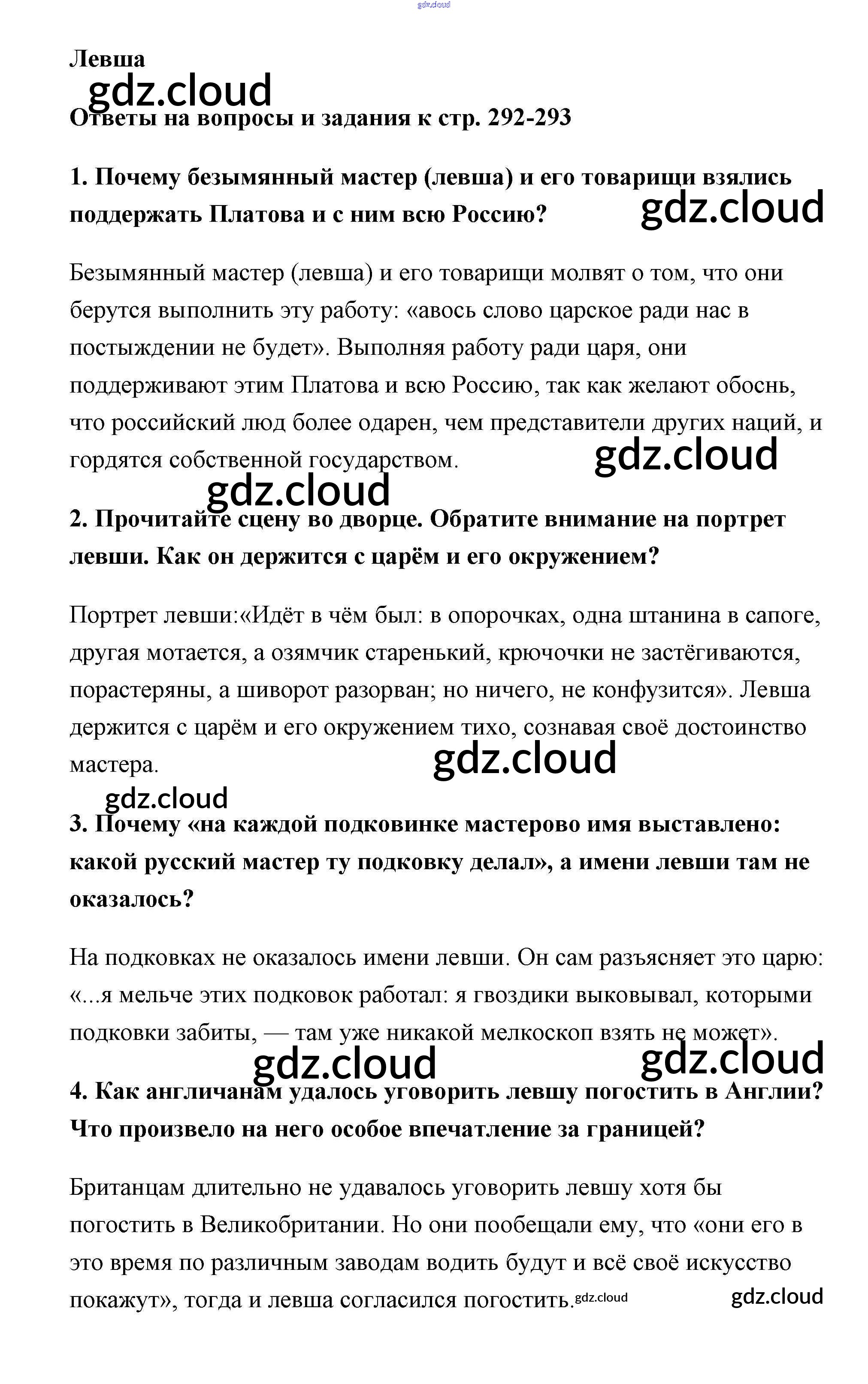 Ответ на задание страница 292-293 Учебник Литература за 6 (шестой) класс Полухина, Коровина, Журавлев 2016 Часть 1