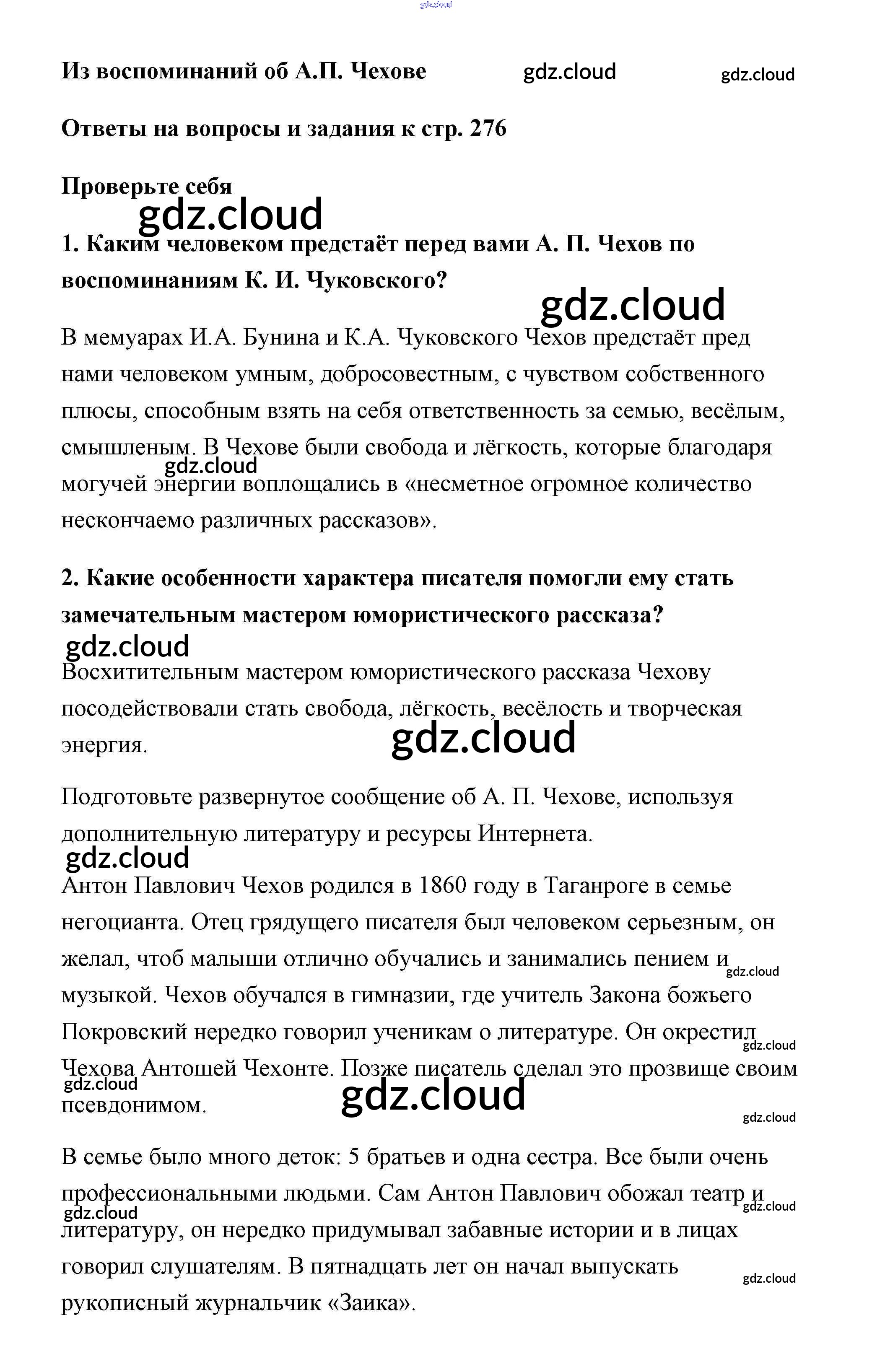 Ответ на задание страница 276 Учебник Литература за 6 (шестой) класс Полухина, Коровина, Журавлев 2016 Часть 1