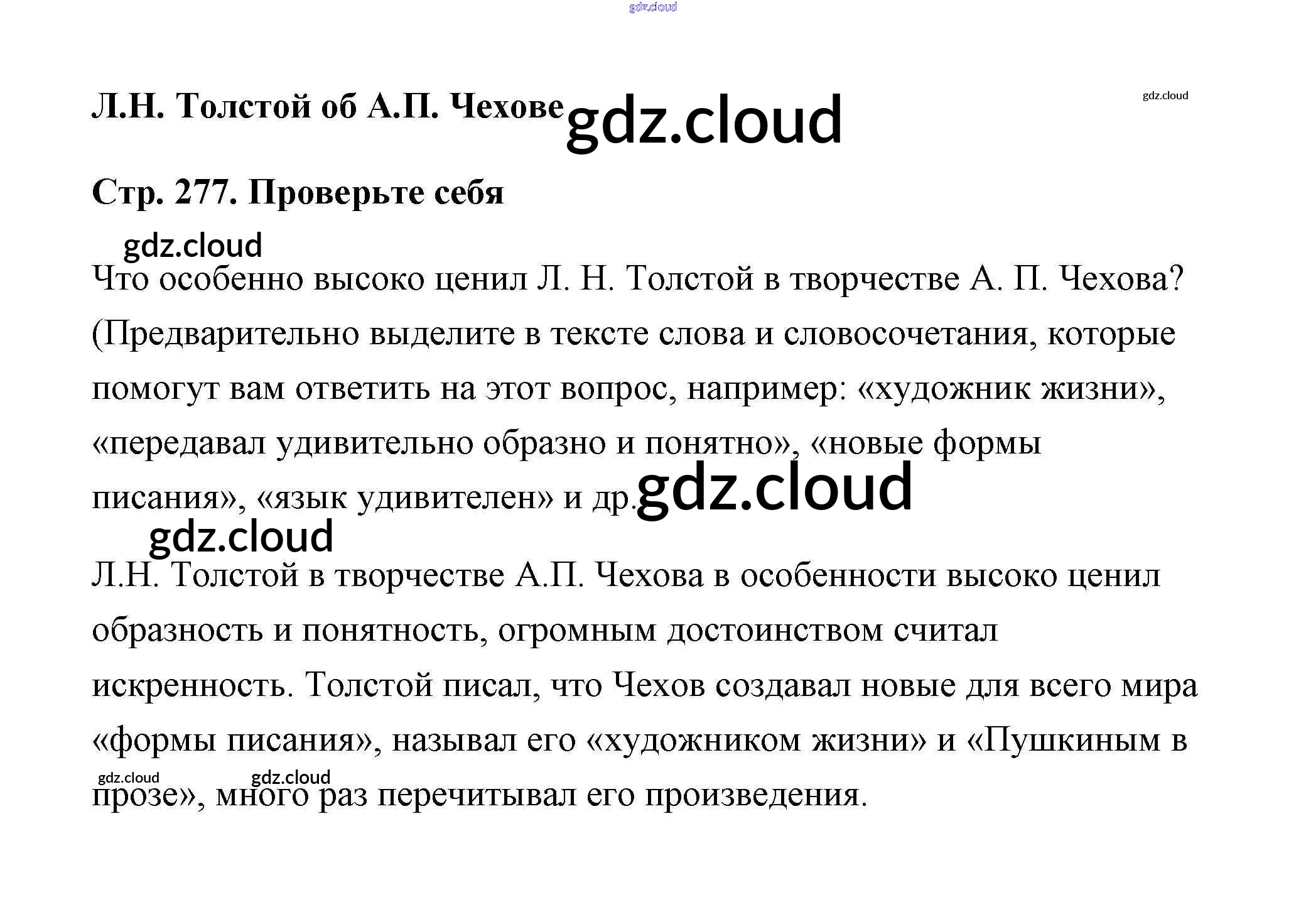 Ответ на задание страница 277 Учебник Литература за 6 (шестой) класс Полухина, Коровина, Журавлев 2016 Часть 1