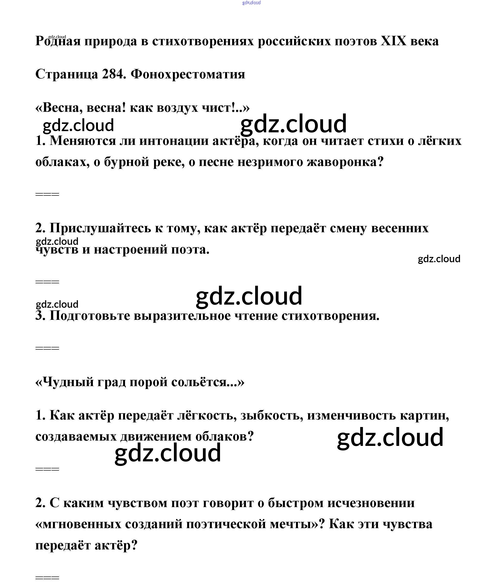 Ответ на задание страница 284 Учебник Литература за 6 (шестой) класс Полухина, Коровина, Журавлев 2016 Часть 1