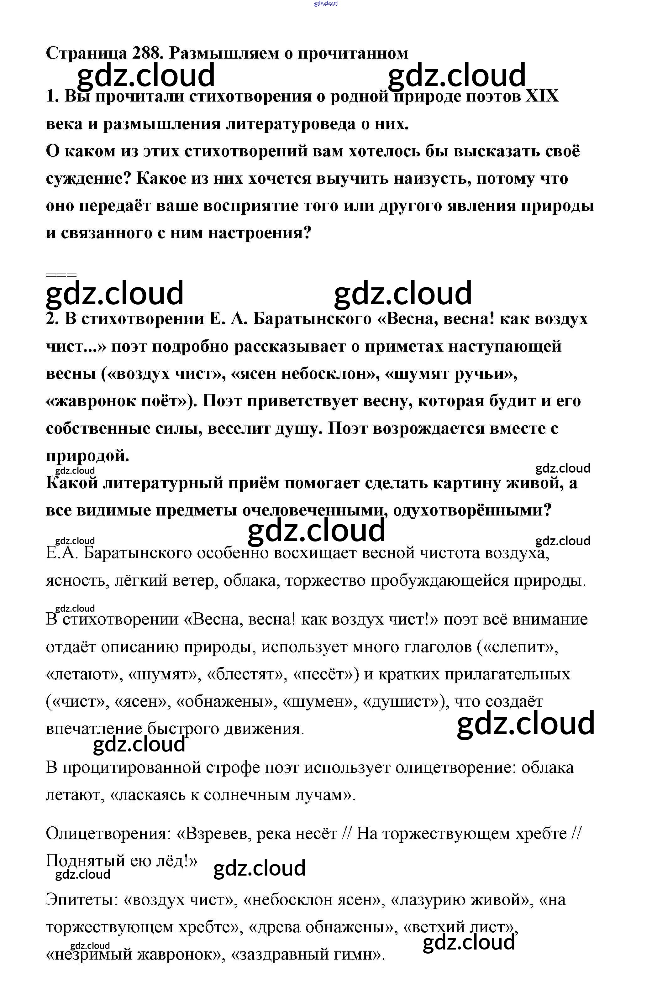 Ответ на задание страница 288 Учебник Литература за 6 (шестой) класс Полухина, Коровина, Журавлев 2016 Часть 1