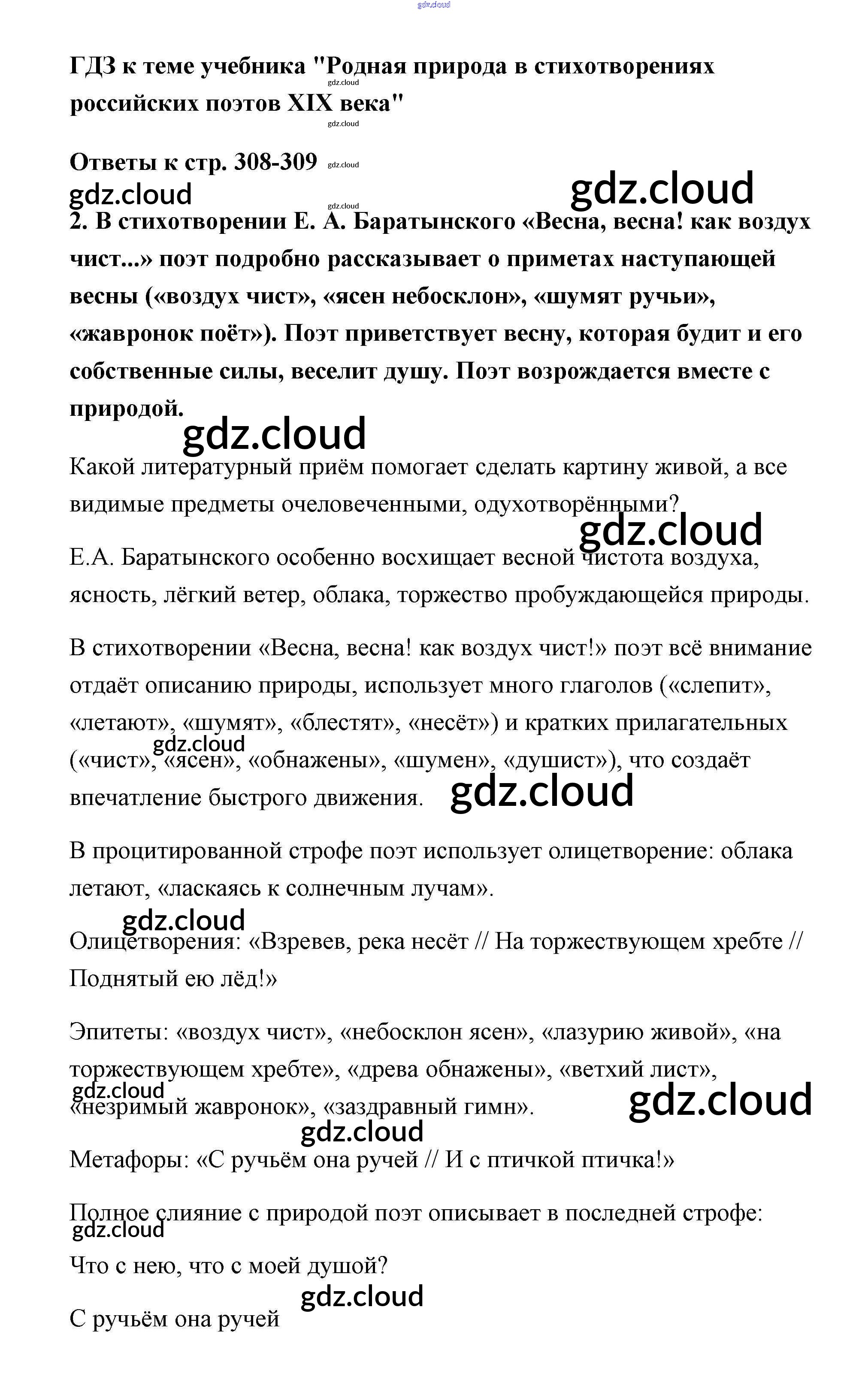 Ответ на задание страница 308-309 Учебник Литература за 6 (шестой) класс Полухина, Коровина, Журавлев 2016 Часть 1