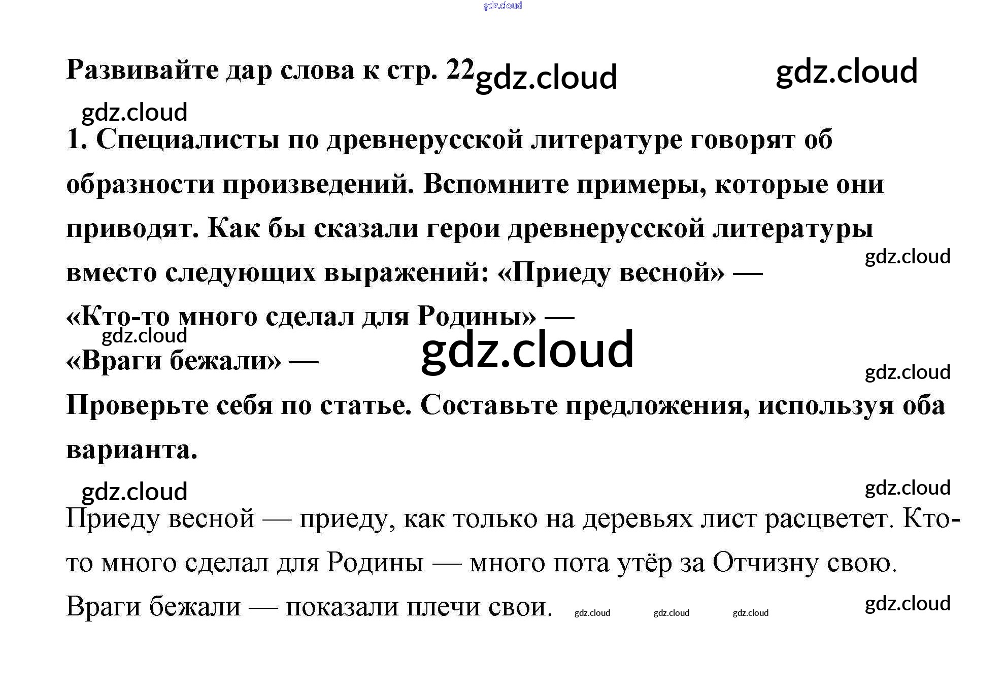 Ответ на задание страница 22 Учебник Литература за 6 (шестой) класс Полухина, Коровина, Журавлев 2016 Часть 1