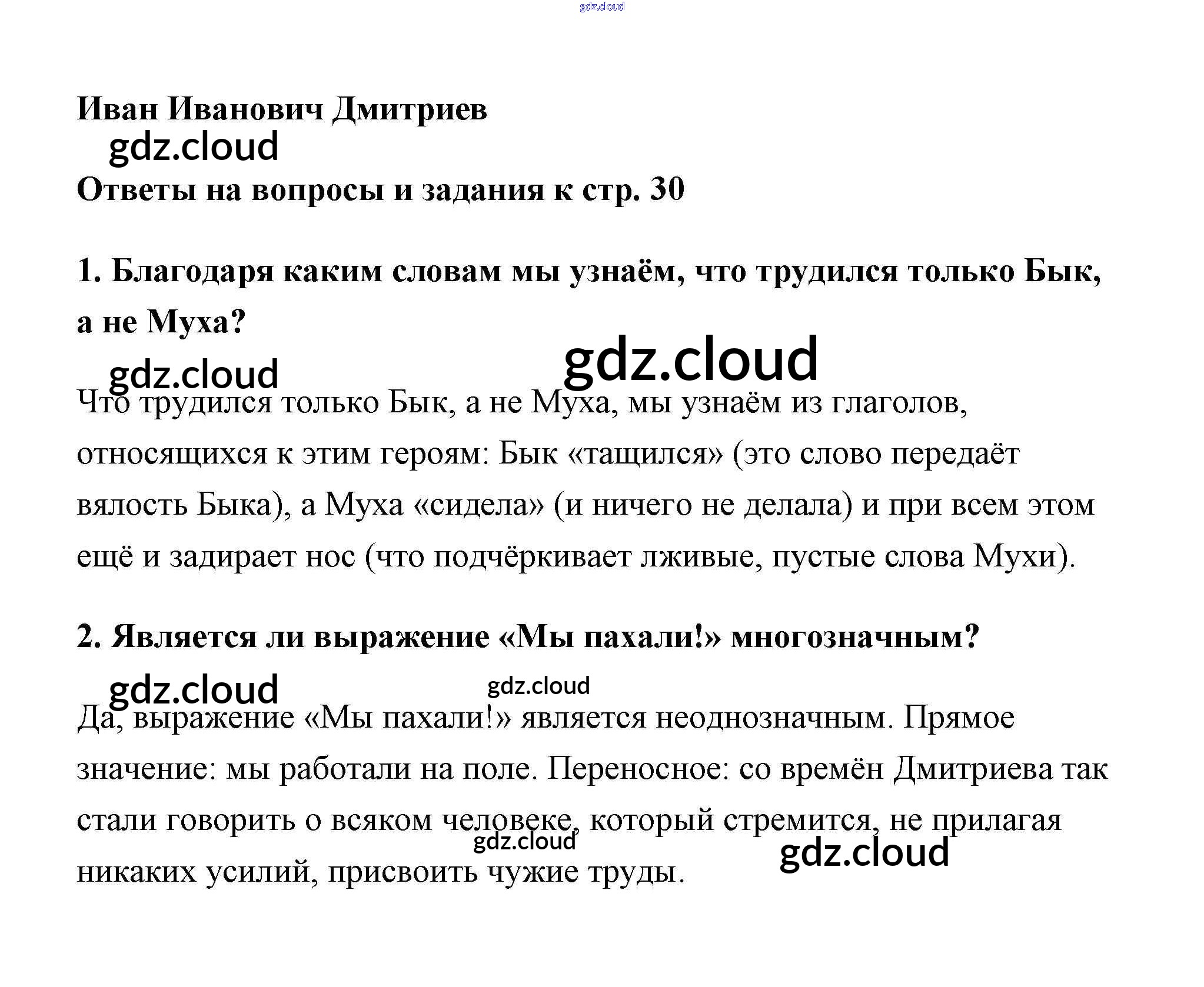 Ответ на задание страница 30 Учебник Литература за 6 (шестой) класс Полухина, Коровина, Журавлев 2016 Часть 1