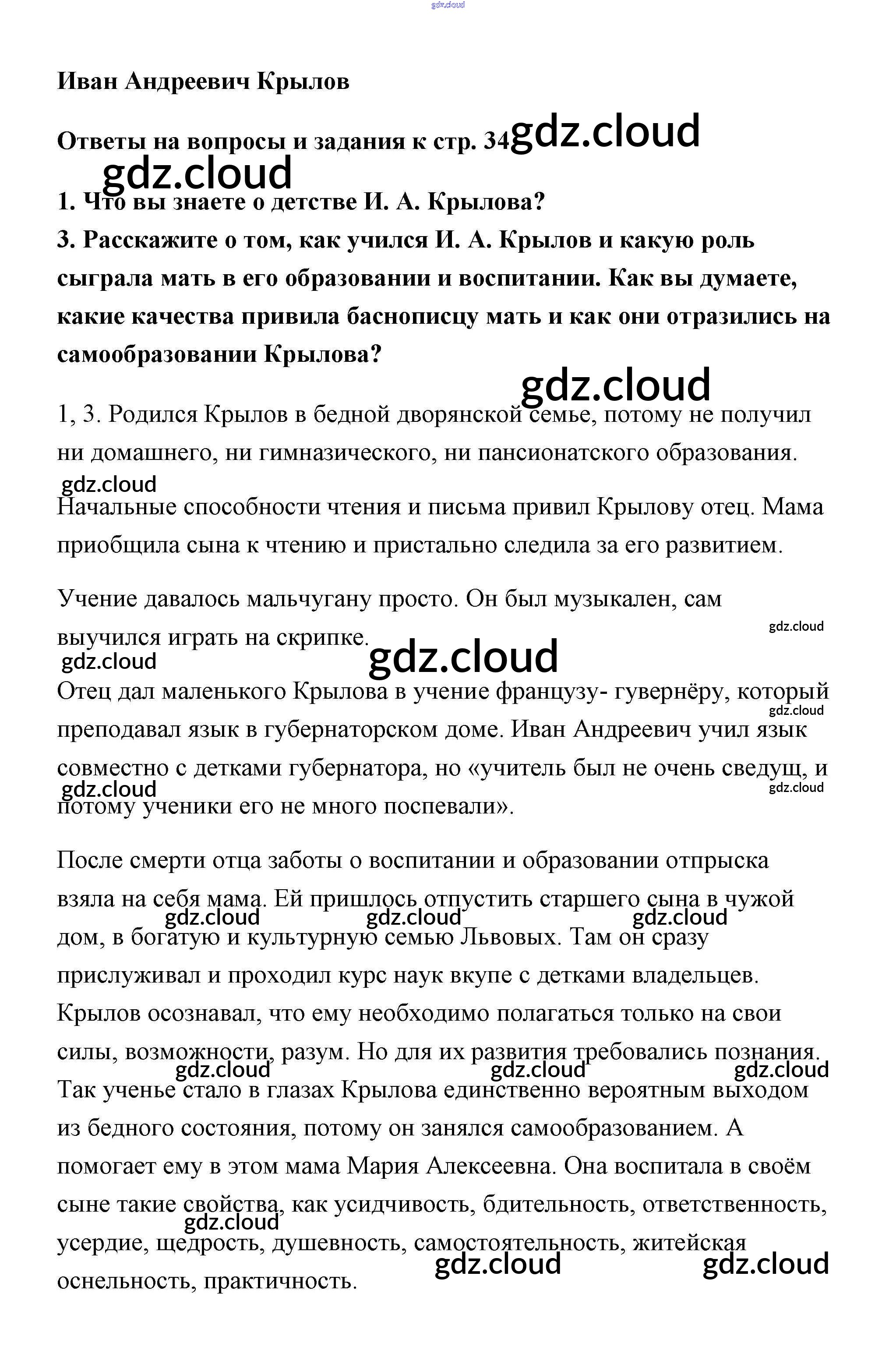 Ответ на задание страница 34 Учебник Литература за 6 (шестой) класс Полухина, Коровина, Журавлев 2016 Часть 1