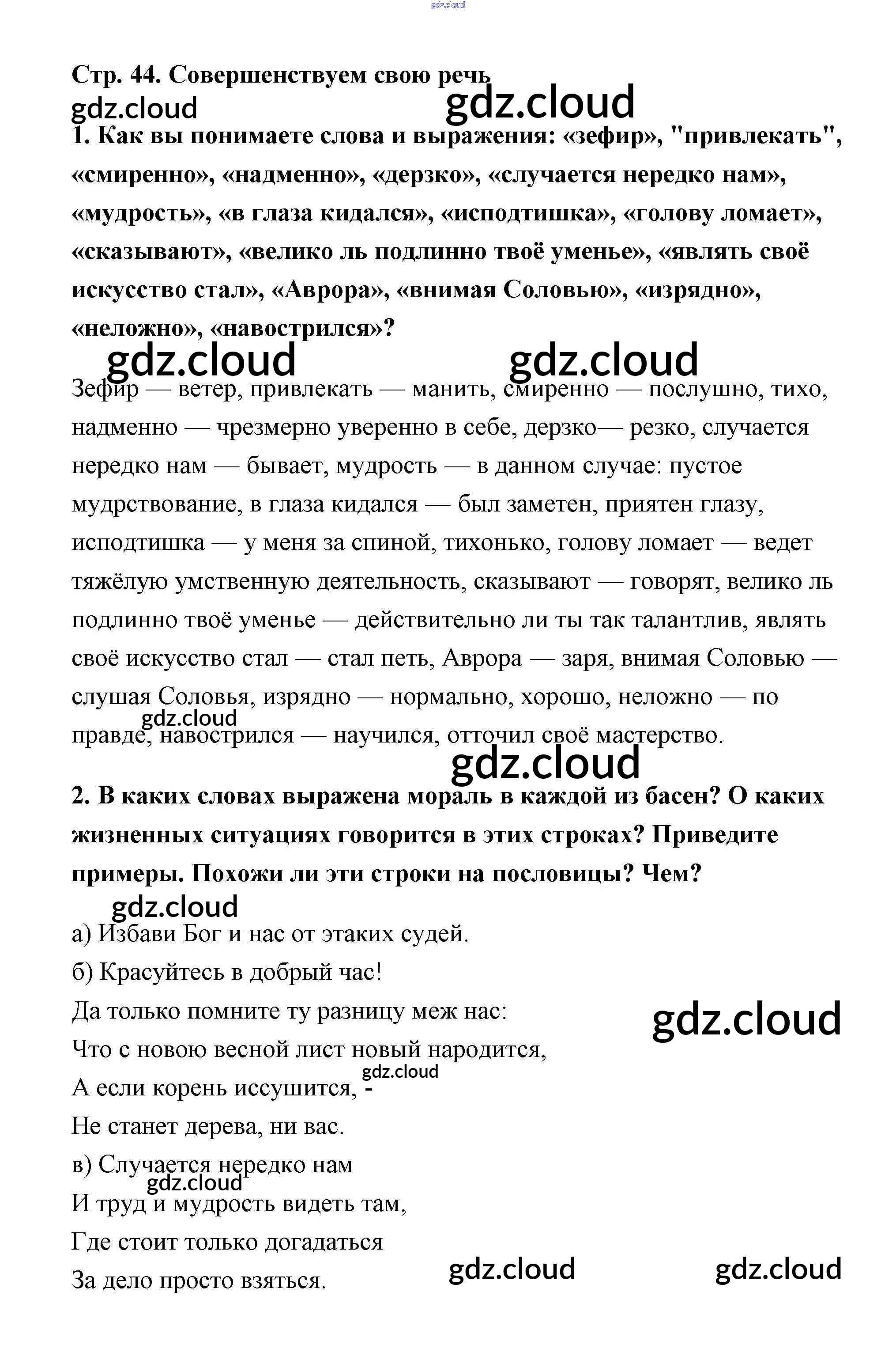 Ответ на задание страница 44 Учебник Литература за 6 (шестой) класс Полухина, Коровина, Журавлев 2016 Часть 1