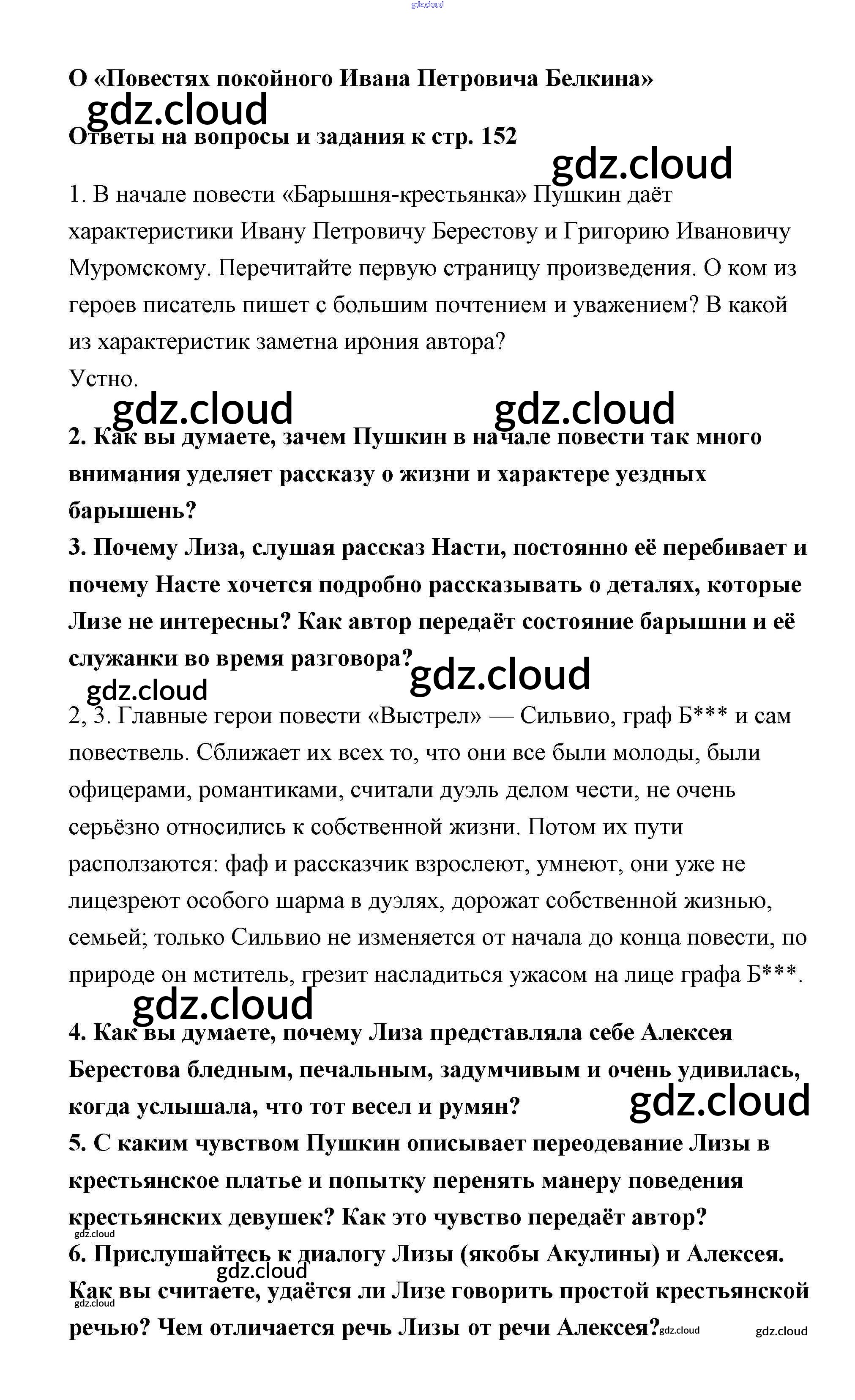 Ответ на задание страница 152 Учебник Литература за 6 (шестой) класс Полухина, Коровина, Журавлев 2016 Часть 1
