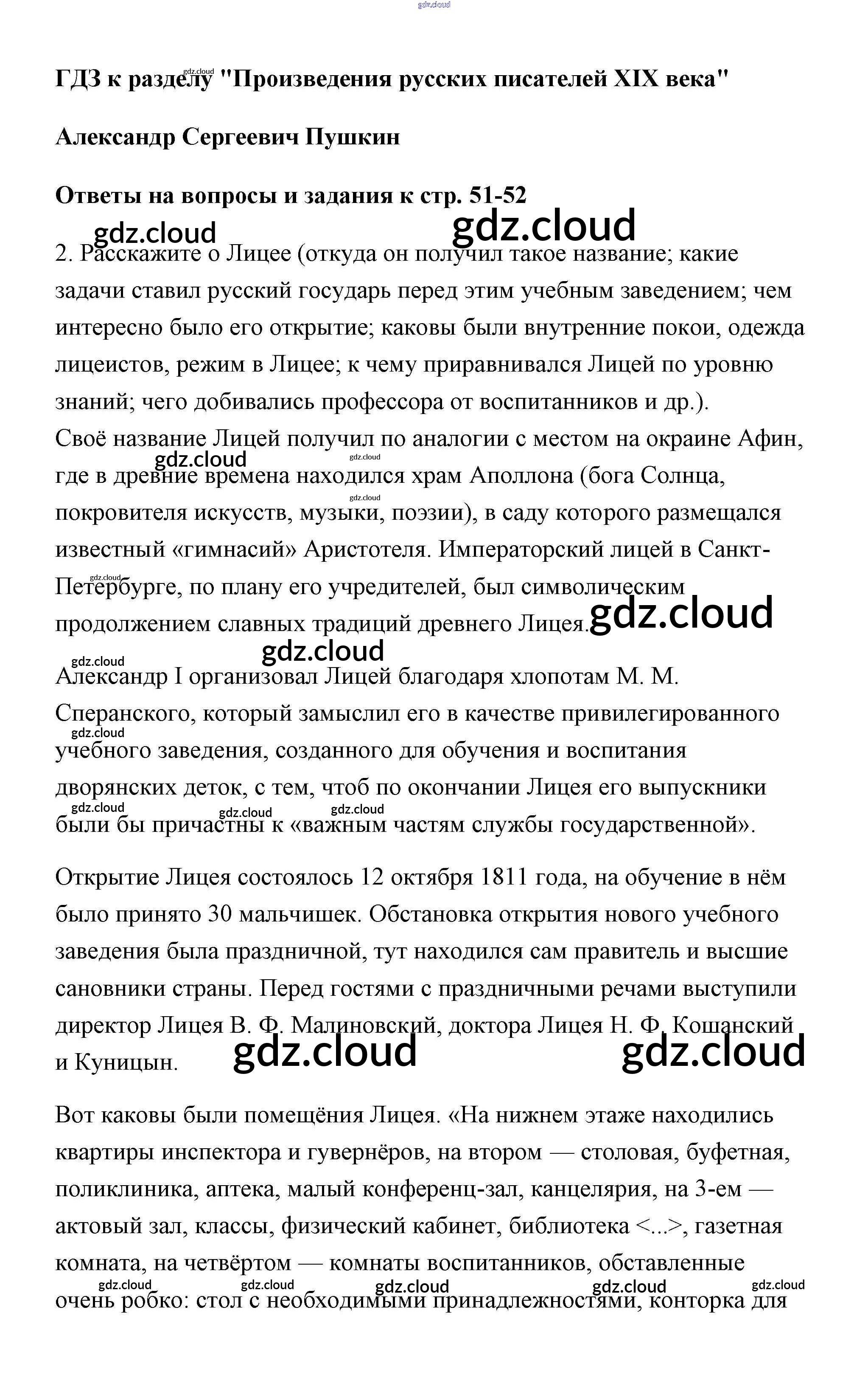 Ответ на задание страница 51-52 Учебник Литература за 6 (шестой) класс Полухина, Коровина, Журавлев 2016 Часть 1