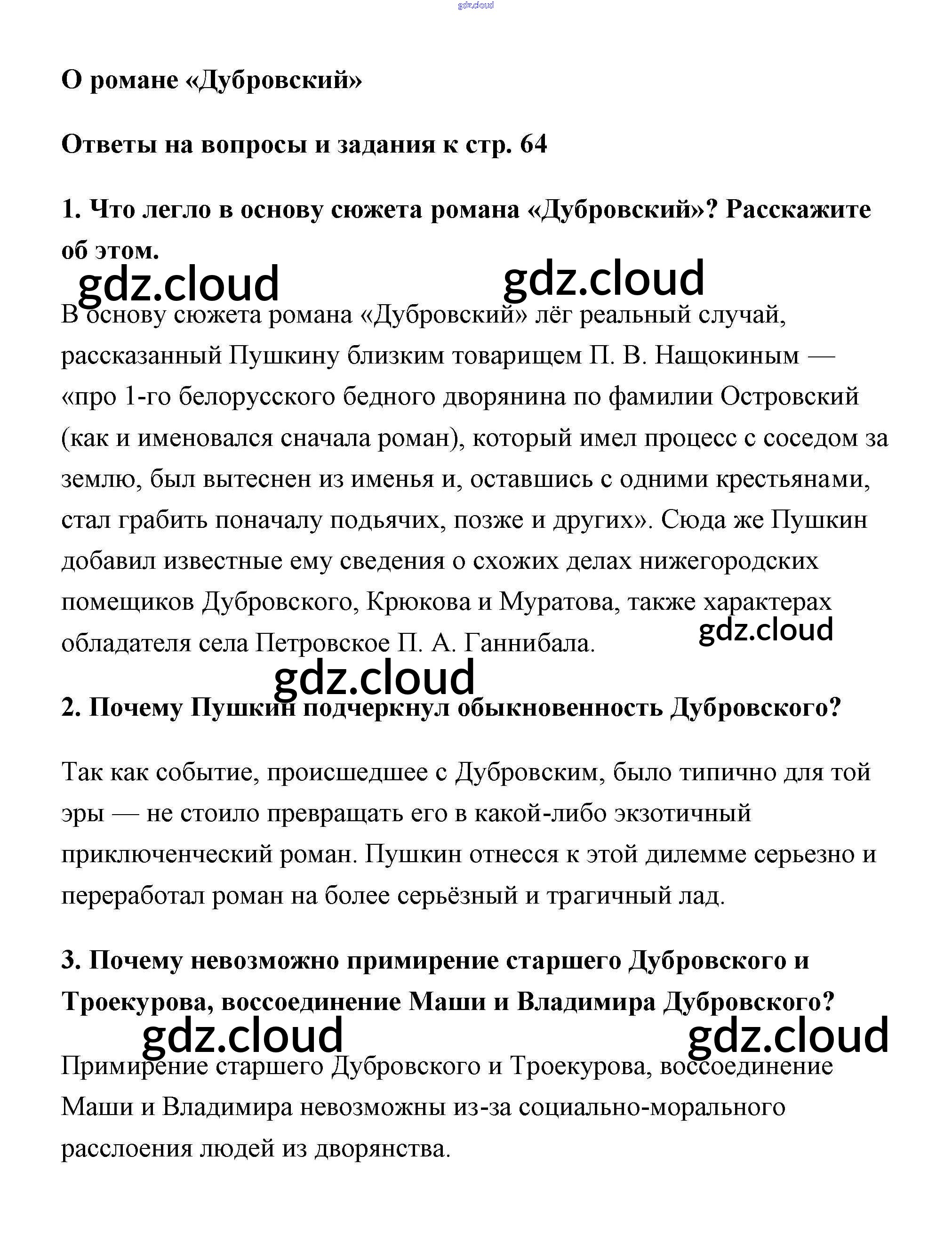 Ответ на задание страница 64 Учебник Литература за 6 (шестой) класс Полухина, Коровина, Журавлев 2016 Часть 1