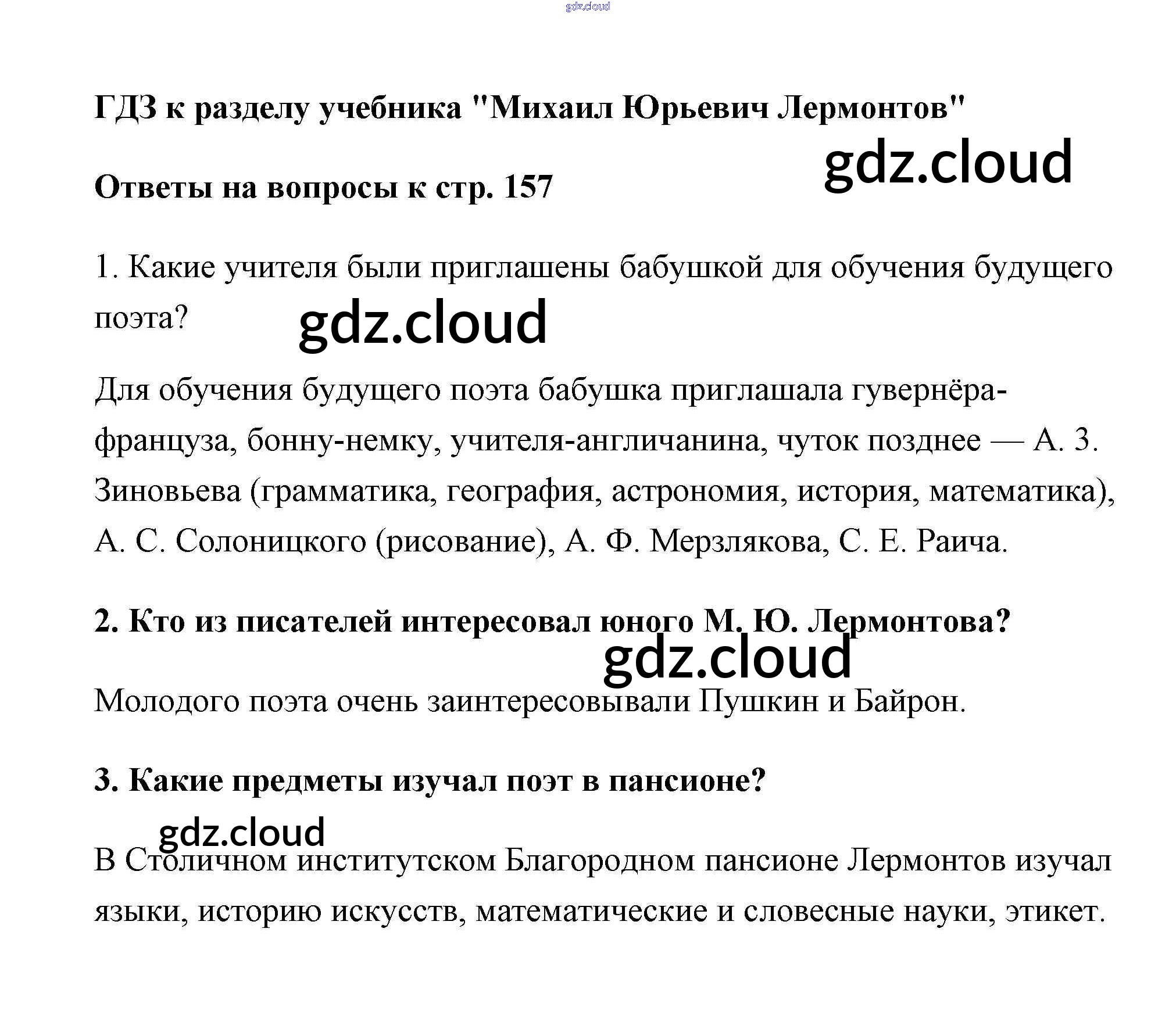 Ответ на задание страница 157 Учебник Литература за 6 (шестой) класс Полухина, Коровина, Журавлев 2016 Часть 1