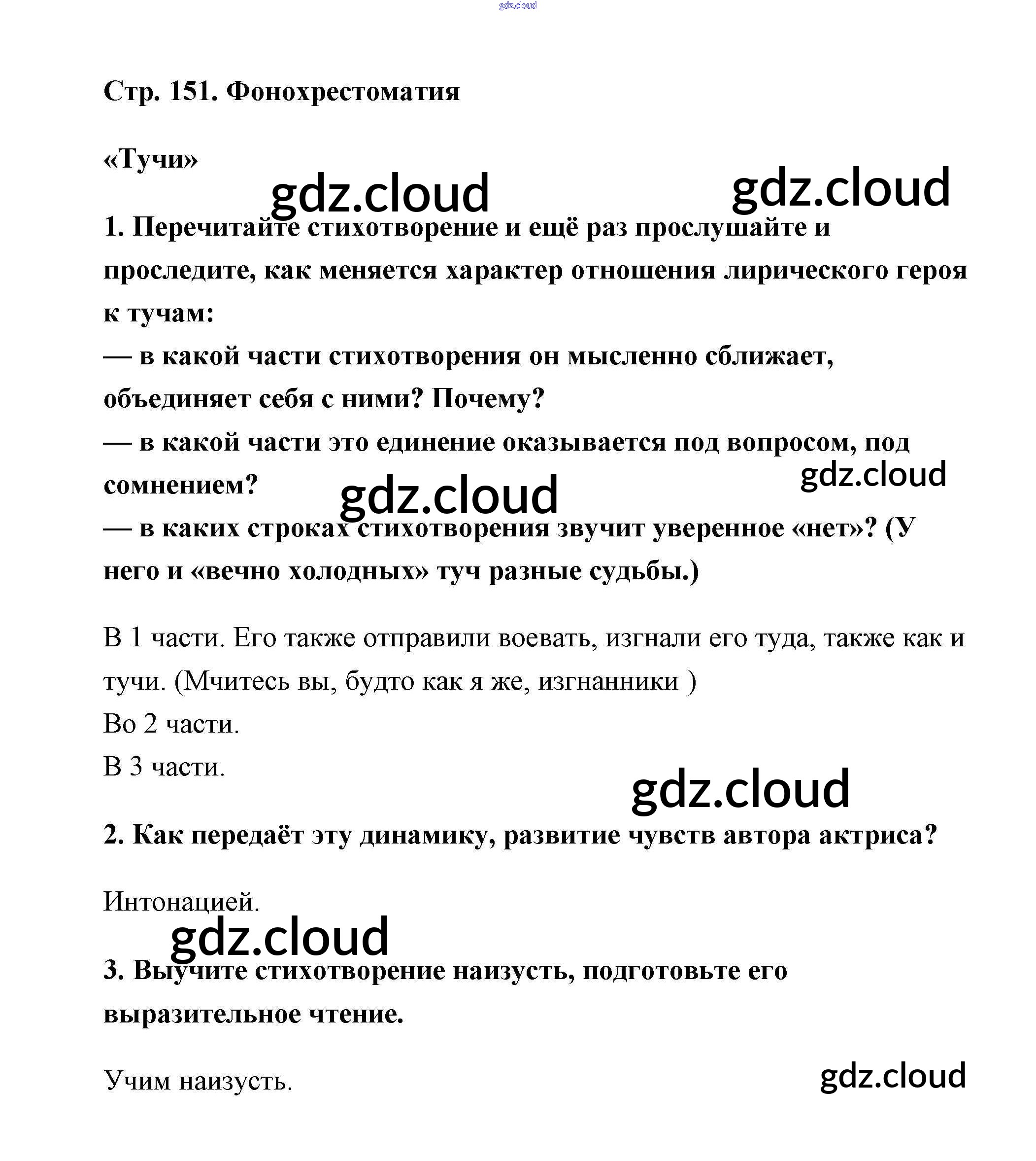 Ответ на задание страница 151 Учебник Литература за 6 (шестой) класс Полухина, Коровина, Журавлев 2016 Часть 1