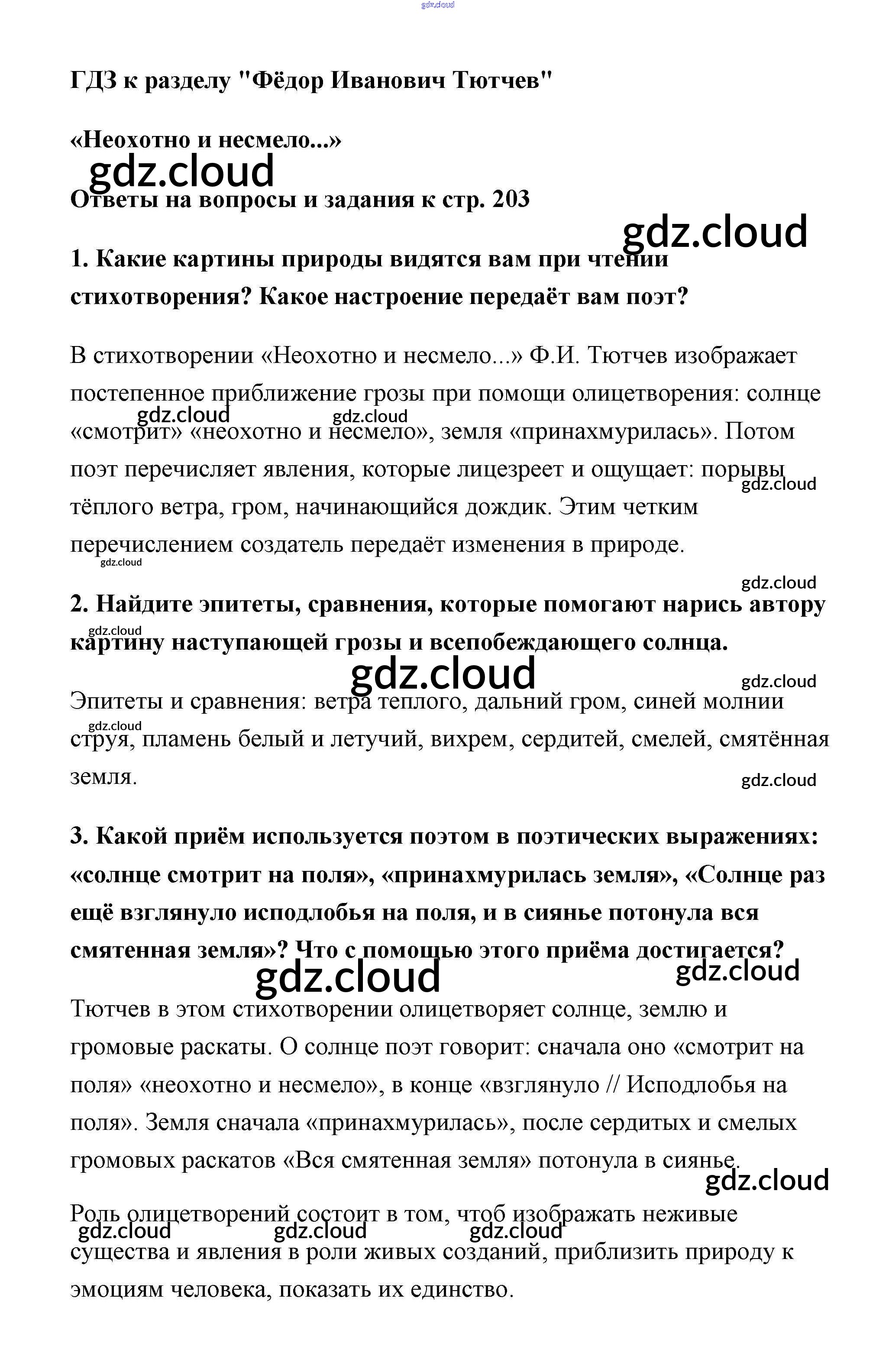 Ответ на задание страница 203 Учебник Литература за 6 (шестой) класс Полухина, Коровина, Журавлев 2016 Часть 1