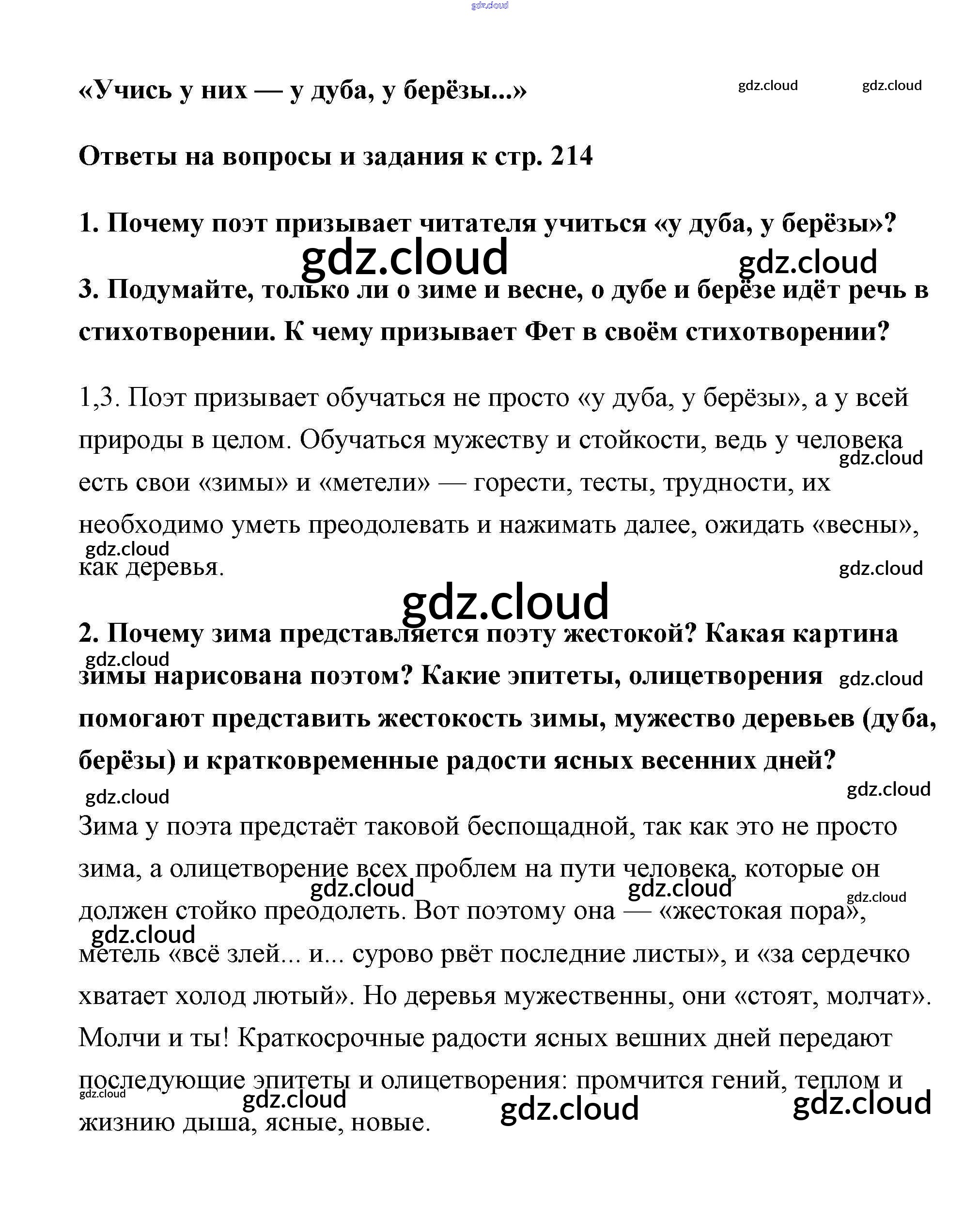 Ответ на задание страница 214 Учебник Литература за 6 (шестой) класс Полухина, Коровина, Журавлев 2016 Часть 1