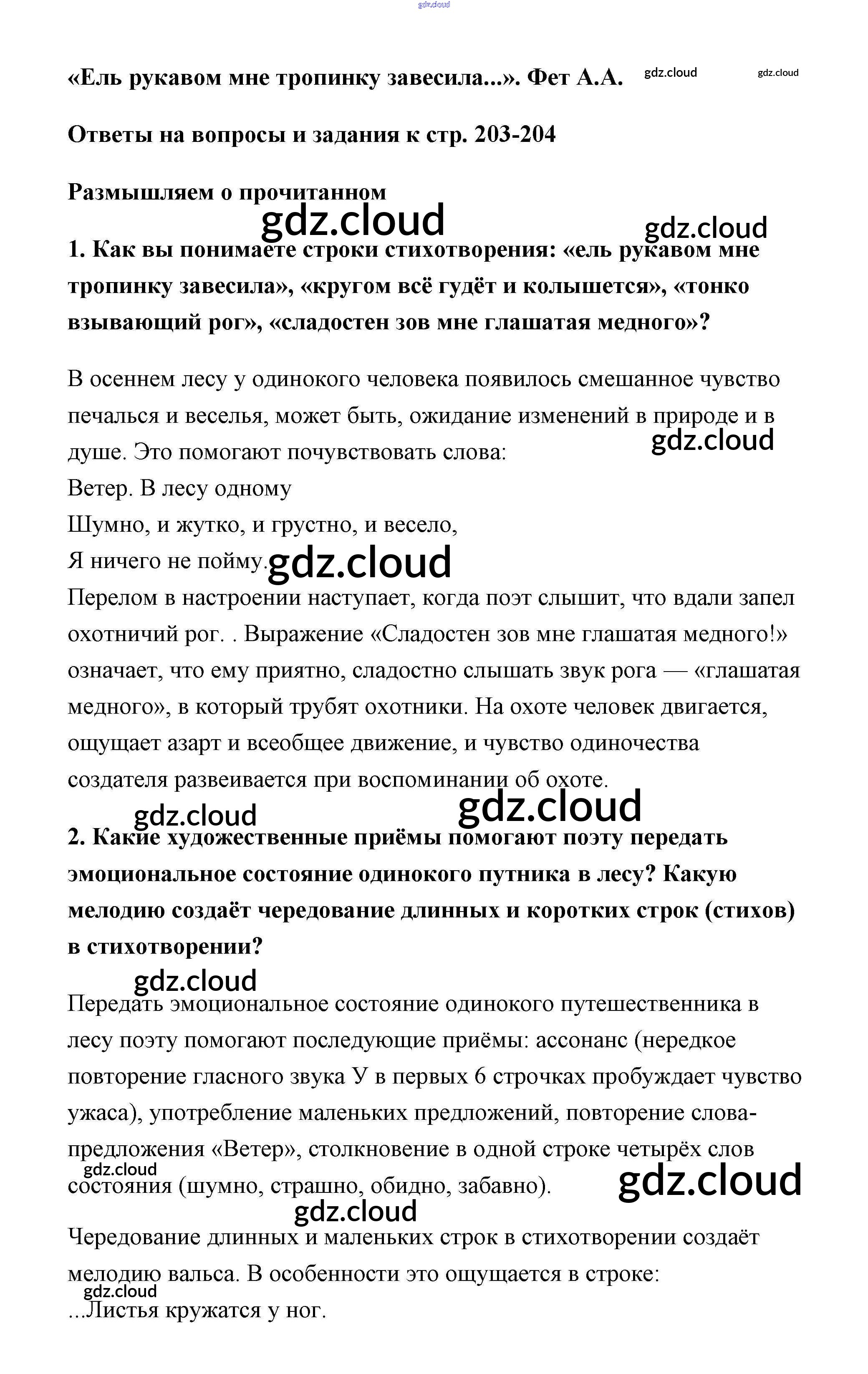 Ответ на задание страница 203-204 Учебник Литература за 6 (шестой) класс Полухина, Коровина, Журавлев 2016 Часть 1