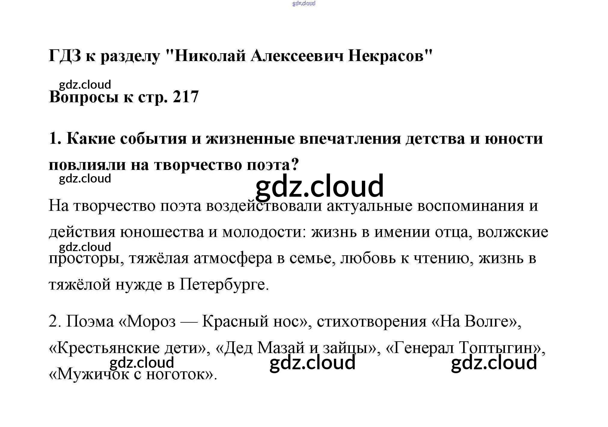 Некрасов Ответы к Части 1 (Старое 15-е издание) по Литературе 6 класс Учебник Полухина Часть 1 Просвещение