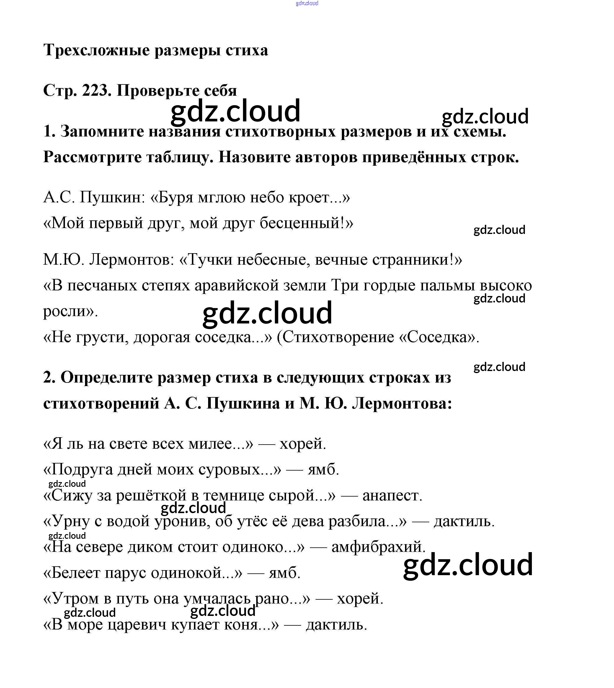Ответ на задание страница 223 Учебник Литература за 6 (шестой) класс Полухина, Коровина, Журавлев 2016 Часть 1