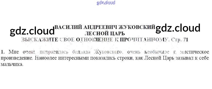 Выскажите свое отношение к прочитанному Василий Андреевич Жуковский. Лесной царь по Литературе 6 класс Учебник Ланин Алгоритм успеха Часть 1, 2 Вентана-граф