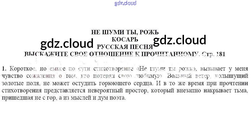 Выскажите свое отношение к прочитанному Не шуми ты, рожь. Косарь. Русская песня по Литературе 6 класс Учебник Ланин Алгоритм успеха Часть 1, 2 Вентана-граф