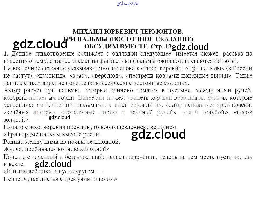 Обсудим вместе Михаил Юрьевич Лермонтов. Три пальмы (восточное сказание) по Литературе 6 класс Учебник Ланин Алгоритм успеха Часть 1, 2 Вентана-граф