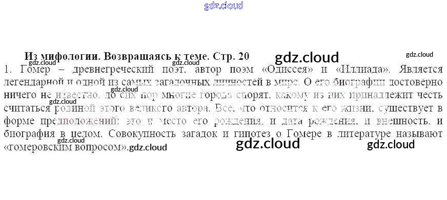 Из мифологии. Возвращаясь к теме, стр. 20 Ответы к Части 1 по Литературе 6 класс Учебник Меркин Инновационная школа Часть 1, 2 Русское слово