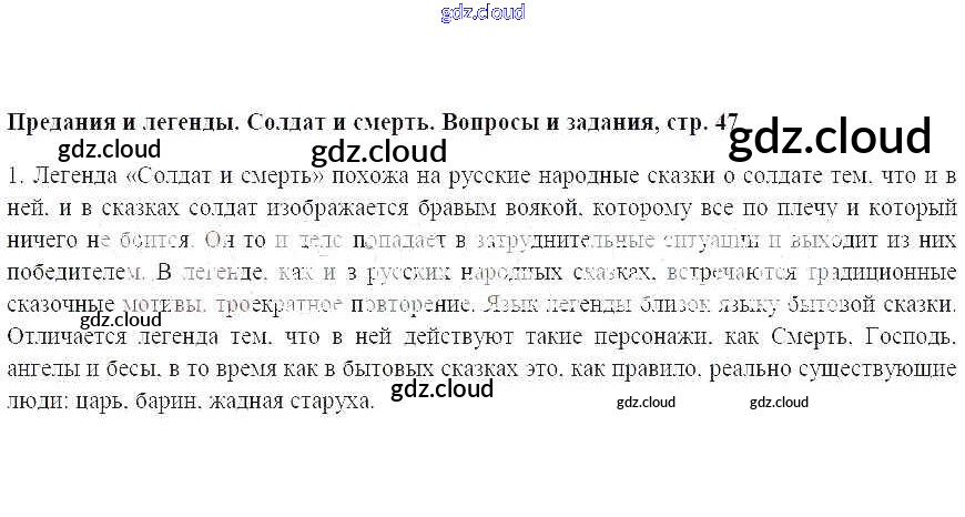 Предания и легенды. Солдат и смерть. Вопросы и задания, стр. 47 Ответы к Части 1 по Литературе 6 класс Учебник Меркин Инновационная школа Часть 1, 2 Русское слово