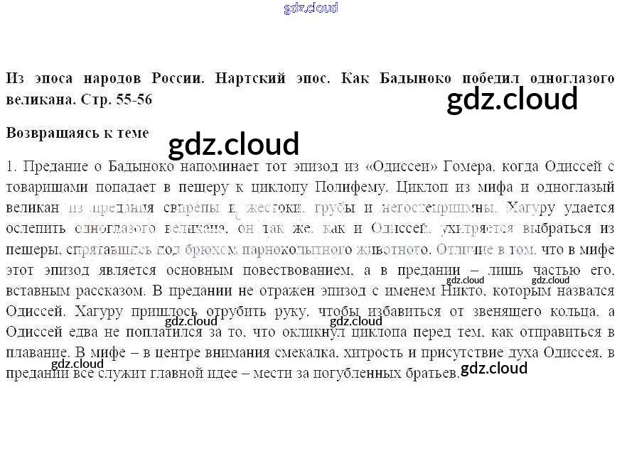 Возвращаясь к теме Как Бадыноко победил одноглазого великана, стр. 55-56 по Литературе 6 класс Учебник Меркин Инновационная школа Часть 1, 2 Русское слово