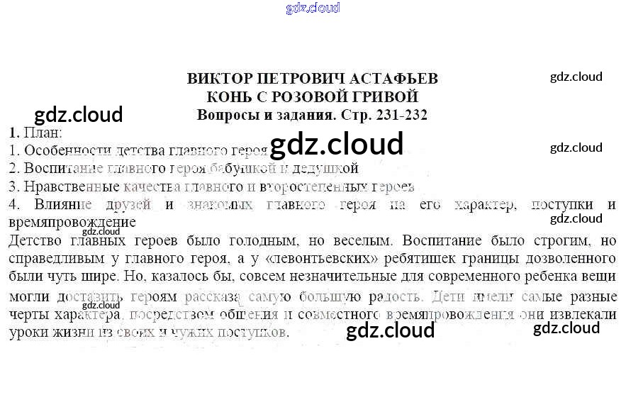 Вопросы и задания Виктор Петрович Астафьев. Конь с розовой гривой по Литературе 6 класс Учебник Меркин Инновационная школа Часть 1, 2 Русское слово