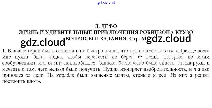 Вопросы и задания Д. Дефо. Жизнь и удивительные приключения Робинзона Крузо по Литературе 7 класс Учебник Чертов Часть 1, 2 Просвещение
