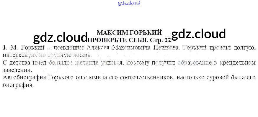 Проверьте себя Максим Горький по Литературе 7 класс Учебник Коровина Часть 1, 2 Просвещение