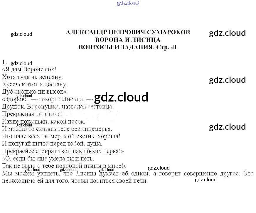 часть 1 / Александр Петрович Сумароков. Ворона и лисица / Вопросы и задания / 1