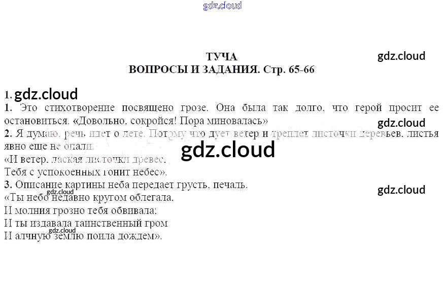 Вопросы и задания Туча по Литературе 7 класс Учебник-хрестоматия Курдюмова Вертикаль Часть 1, 2 Дрофа