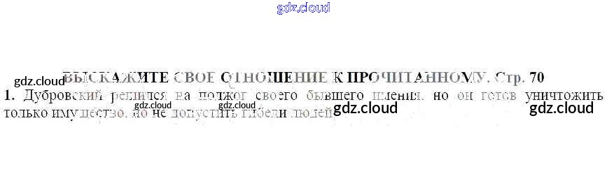 Выскажите свое отношение к прочитанному (стр. 70) Дубровский (роман) по Литературе 7 класс Учебник Ланин Алгоритм успеха Часть 1, 2 Вентана-граф