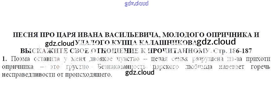 Выскажите свое отношение к прочитанному Песня про царя Ивана Васильевича, молодого опричника и удалого купца Калашникова по Литературе 7 класс Учебник Ланин Алгоритм успеха Часть 1, 2 Вентана-граф