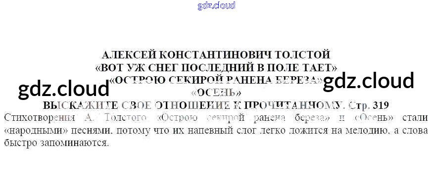 Алексей Константинович Толстой. Вот уж снег последний в поле тает Ответы к Части 1 по Литературе 7 класс Учебник Ланин Алгоритм успеха Часть 1, 2 Вентана-граф
