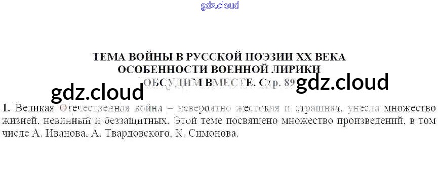 Обсудим вместе Тема войны в русской поэзии XX века. Особенности военной лирики по Литературе 7 класс Учебник Ланин Алгоритм успеха Часть 1, 2 Вентана-граф
