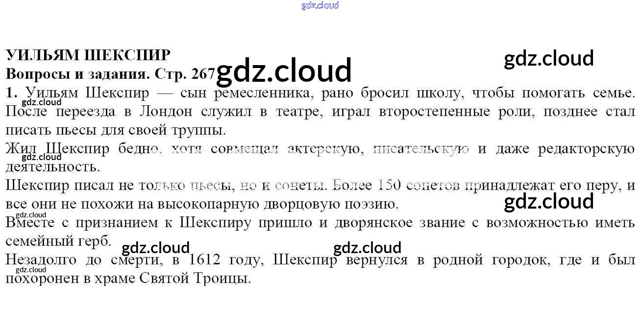 Вопросы и задания Уильям Шекспир по Литературе 7 класс Учебник Меркин Инновационная школа Часть 1, 2 Русское слово