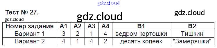 Ответ на задание Тест №27 Контрольно-измерительные материалы (КИМ) Литература за 7 (седьмой) класс Зубова 2016 ФГОС онлайн и без номера телефона.