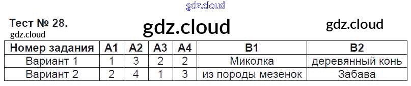 Ответ на задание Тест №28 Контрольно-измерительные материалы (КИМ) Литература за 7 (седьмой) класс Зубова 2016 ФГОС онлайн и без номера телефона.
