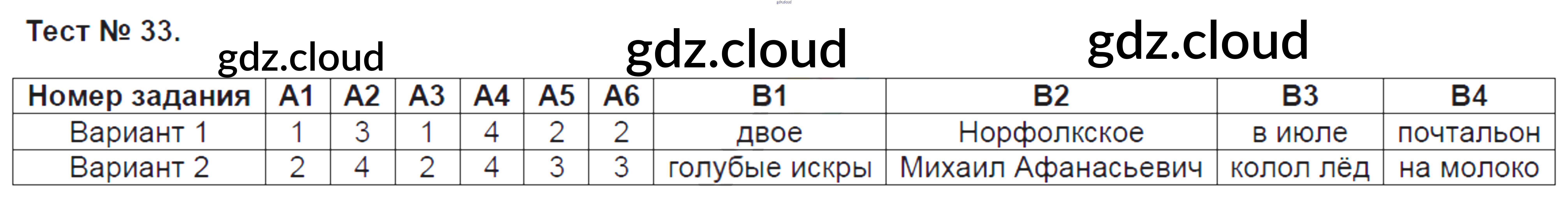 Ответ на задание Тест №33 Контрольно-измерительные материалы (КИМ) Литература за 7 (седьмой) класс Зубова 2016 ФГОС онлайн и без номера телефона.